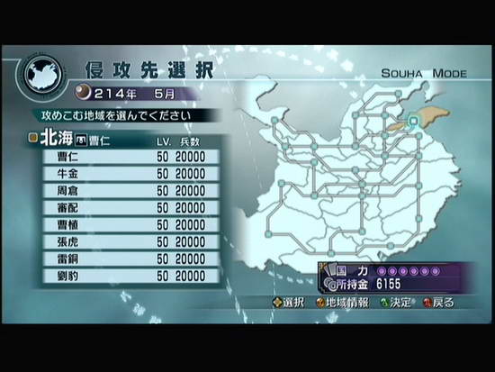 选择战斗后即可选择侵略哪个国家,选定国家后进行友军配置