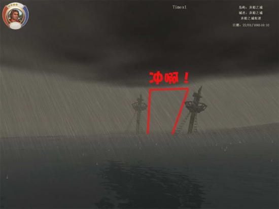 对话完毕以后,出门前记得存一下档。因为出来以后就在汹涌的海水里游泳,目标是『费尔南多号』