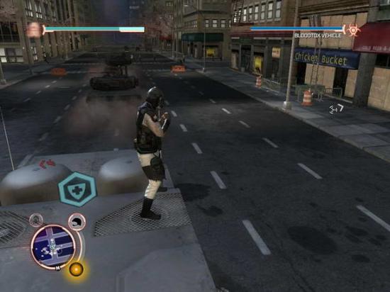 慢慢的打塌几个大楼,有一座大楼坦克会被触手攻击,那之后就要猪脚坐进坦克里轰毁大楼了。(按E进坦克)在最后一个像白宫一样的大楼被轰掉后,干掉里面的变异体。建议上大锤。在对方头上提示后,过去按E可以进入敲脑袋模式……