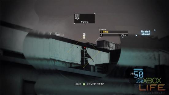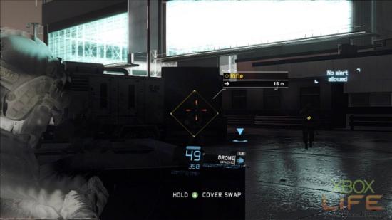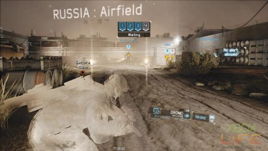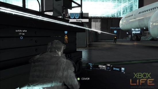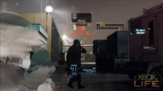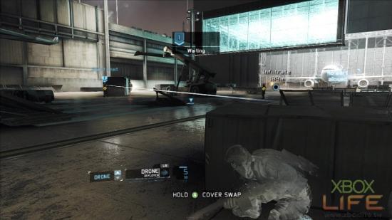 地图正中央那名坐在堆高机上的敌人先不管它,接下来就是用UAV标定同一楼层的4名敌人,建议玩家4号标定物最好是右手边2名肩併肩聊天的其中一名士兵,当团队击杀时趁慢动作时间尚未结束,就顺势把最后一名敌人也处理掉。