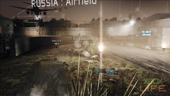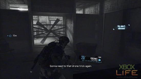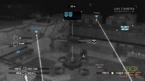 以夜战潜入为任务诉求的Silent Talon,UAV与战术的运用非常吃重,如果无法善用这二项要素,这关肯定玩起来非常痛苦。随著队友前往道路尽头的哨所处,标定哨所前3名敌军,以及1名在路上巡逻的敌军团队击杀。