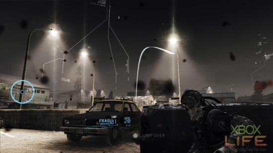 触发汽车在逃跑过程中抛锚的事件后,从下水道来到本关最难完成的区域,玩家会在这裡遭到数十名敌人猛烈的攻击,如果在这裡中弹倒地的话,就无法解开挑战任务B了。当你来到该区域时,立即跑到图示中的位置丢二颗手榴弹在卡车前,让卡车爆炸炸死附近的敌人。