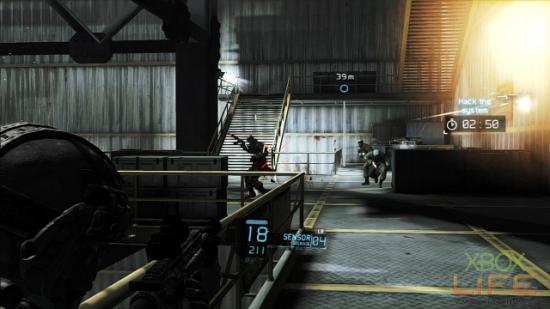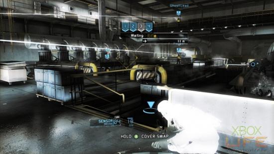 沿著唯一可走的路线来到轮机室,先近战处理掉出入口处的2名敌人后,目视标定桥上的2名巡逻士兵,以及一楼2名巡逻的士兵后,在团队击杀进入慢动作状态时,再手动击杀最后剩下来的敌人。