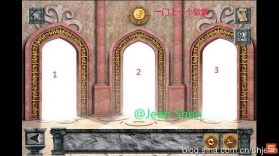 进入门2,再进去,可以看到如下场景,将所搜集到的星座徽章装到两边墙上;