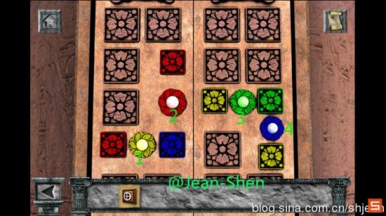 进入2号门,找到一把梯子,将梯子加到地球仪旁边的那面墙上,可以打开上面的黄色橱;