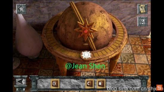 这是看墙上,打开了一扇太阳的门,将太阳放进去;再回到地球仪,将太阳点成月亮,然后将月亮装上,依次类推;全装完后可以得到绿色水晶了;