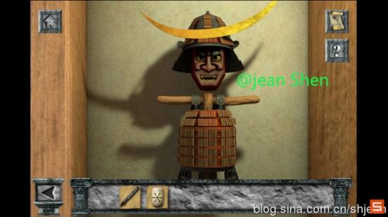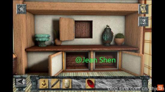 进入房间,用红色雨伞遮住光速,将小佛放到空缺处;