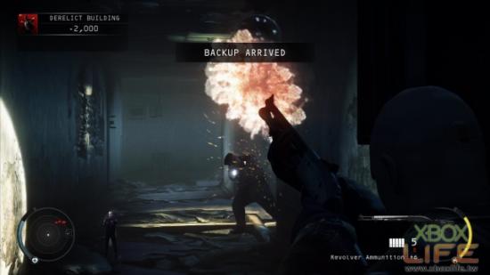 虽然本游戏是潜入型游戏,但是开枪手感也完全不输一般的第三人称射击游戏,敌人倒下的动作非常自然,而且绝不重複,所以喜欢玩TPS的玩家也可以把这一片从头到尾当TPS来玩也非常过瘾,而且也可以随时切换左肩或右肩射击以及盲射。