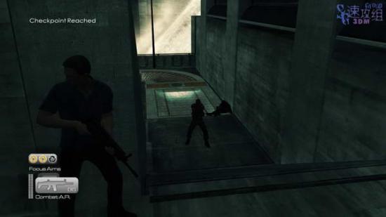 从电梯出来后上楼,在另一边楼梯处等敌人上来后干掉,然后下楼。