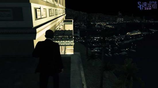 这里躲到柱子后边,等敌人过来后暗杀掉,然后用手机破坏监视器,通过后来到天台,干掉敌人后去另一栋楼的房顶,爬上窗户后干掉敌人上去。