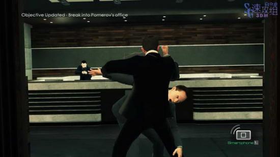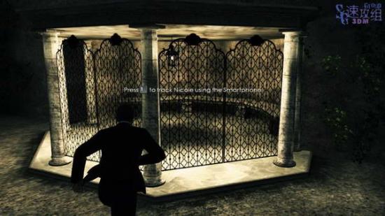 从阳台跳出来之后在房顶跳到另一边,进入房间后到保险柜那里使用手机开保险箱,然后进入过场动画,最后关保险箱的时候警报响起。