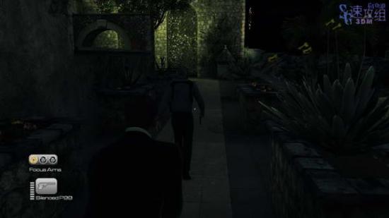 过场动画结束后一直上楼梯,到最顶层后从石亭上爬上去,然后沿着墙爬到窗户下CQC解决敌人。