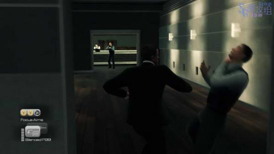 进入电梯后上楼,电梯门开后就有一个敌人,然后开始子弹时间,CQC解决门口的敌人,然后解决柜台后面两个,可以枪杀,可以CQC,安喜欢得方法来就行。杀掉后进入左边的门,进门后从右边走,再进另一扇门,从接下来的房间阳台跳出去。