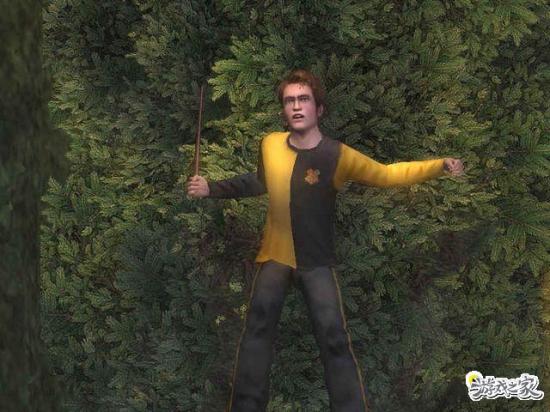 前进一段时间后就会触发剧情,塞德里克·迪戈里帮忙击倒了此时已经被邪恶势力暂时控制并企图在背后偷袭哈利波特的克多尔·克鲁姆。然而接下来却突生变故,具有生命的迷宫开始疯狂地攻击两人——很明显这也是邪恶势力在搞鬼。没有时间多想了,赶快逃离是现在最好的选择。此时依然要控制哈利波特前进,但是视角却从俯视的第三人称视角换成了类似第一人称的跟踪式第三人称视角。从现在开始,迷宫道路的两侧会突然出现枝叶,阻拦哈利波特前进的速度,而地面上还有一些具有尖刺的植物,如果碰到会减少哈利波特的生命值。在这段逃亡的路上,笔者建议大家最好在面对分岔路时选择右边的道路。因为此时无论你选择哪条路前进,需要移动的距离都是一样的,而选择右边的路,会相对更快地调整视角,以便观察前面的情况。地面上具有尖刺的植物是可以在第一时间发现的,而左右两侧突然出现的枝叶路障在出现前也有征兆,而出现后也有足够的距离来进行躲避。选择右侧的道路前进,可以充分避免在逃亡的路上所受到的伤害。