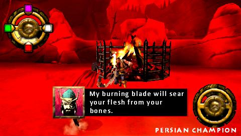 当他的刀变成蓝色时,其攻击是不能防御的,另外他会不时跑到火堆旁让他的刀上带有火,被他的超重击打到后Wrath值减为0。他的攻击力不高,出招硬直时间长,跟他迂回着打,没什么难度。