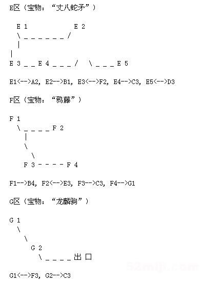 正确的行走方向为: 进门(A)向右出--》(B)向右出--》(C)向上出--》(D)向上出--》(B)向左出--》(B)向左出--》可看到7个坛子,里面有“迷魂计”、“羲光剑”、“旭日之铠”,再向左出可遇见火凤凰(火),打败它可以得到火系终极魔法“翔炎凰”。