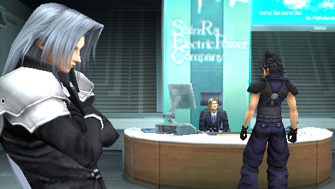 来到入口处发现竟然是神罗公司的兵器在袭击自己人(中途可在49层救助研究员和士兵),原来又是杰奈西斯复制体搞的鬼。接下来是一大段杂兵战,需要注意的就是四个大型机器同时出来的时候,四杆机枪经常连续发射打的玩家无法还手,要多注意防御和用回转攻击。随后萨菲罗斯赶来,从他口中得知这种情况的发生可能是曾经在神罗公司的霍兰德博士在向神罗复仇。两人继续分头寻找入侵者。随后在loveless街救助两拨行人,然后遇到了塔克斯小队成员西斯内被杰奈西斯袭击,秉着英雄救美的优良传统,扎克斯挡在了西斯内面前。