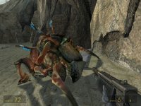 周围满是是你伙伴的尸体,突然从沙子里冒出来的这个蚁狮守卫是不是很恐怖?无暇顾及这些了,你有活干了。迅速地把这些爆破桶扔向敌人吧!最好围着它转圈来攻击,这样你不至于被它困在角落里。接下来使用火箭发射器和MP7冲锋枪榴弹(右键使用),最后是霰弹枪。它被杀死后,会有一个弗地岗人来到你的面前。