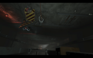 没走多远,红衣女子就被裂缝吞噬了,爱德华就踏上了一个人的路程.在断层里用书桌做垫板上到上层后,爬上左手边的墙缝关闭电闸,下落到上层后继续走.小心在黑暗中行走.直到到达保安处。