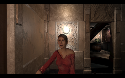 一个优雅的弧线进入炸开的门后,大家可以欣赏游戏中美丽的火焰效果前面2条路都不能走,进入身后的门.一进门遇到个求救的女子.随口打发后进入她身后的破门,拿起灭火器灭火后进入遇到另一个求救的人~拿着灭火器撞开门和女子会合,之后就原路返回灭火.