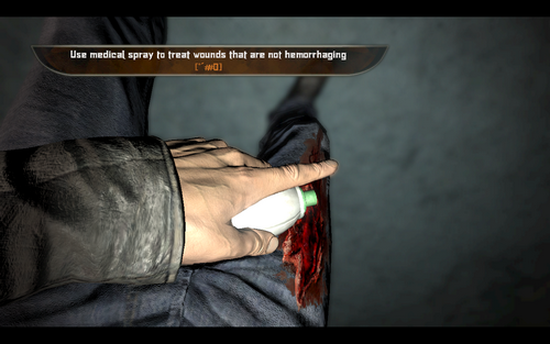 这里说一下治疗模式:按H进入该模式后按W,S查看伤口.使用医药喷雾治疗,听到男主角"啊~~"的一声后表示治疗完毕~