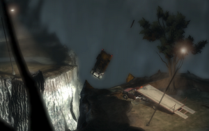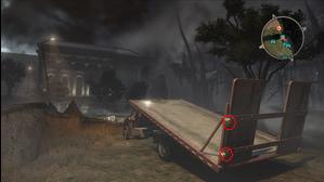 做完了干扰源的任务(当然也可以不做),到达博物馆后,发现有断层无法过去.还好后面有红色拖车.可以放下斜板.另外后面斜板上的2个锁也需要打掉~