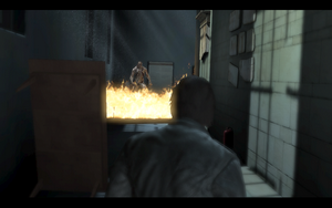 先在铁门外周围收集道具.打开铁门,里面会有地面裂缝,记得它怕火哈.笔直跑到靠近墙壁的断层跳到断裂的油管上,再跳到对面另一段油管上.上了对岸后打坏电箱,然后连接电线,成功后会有电话打入.电话是女主角打来的,大概说了下情况如何不好.爱德华没有办法只能一步一步来.上了电梯后,打碎玻璃来到了男厕所,小心里面的裂缝.我打的时候貌似有慢动作提示.出门后灭火,没走多远女主角又打了个电话给爱德华(闲情逸致啊),不久就会遇到新的怪.一种射飞刀的打怪(样子还很恶心的说)躲在桌子后面用燃烧弹或燃烧瓶攻击,另外注意的是一共2个...破门而入后,发现...。