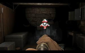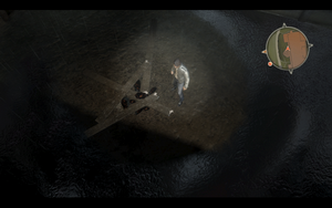 醒来后,闭眼发现柜子后面有亮光.打开后老人的幽灵为男主角开了机关.然后就又是剧情.过后拿起徽记,跑到ROOM943房门左边的地方在红叉处使用手电+徽记