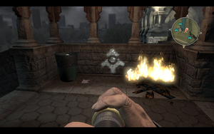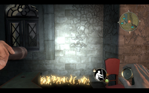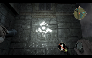 小心消灭裂缝和小心避开黑暗怪后,爬上绳索,来到天台.剧情,继续上楼遇到机关,得知需要6个印记才可以.(魔眼等级需要30以上,还好自己把魔根全灭了)