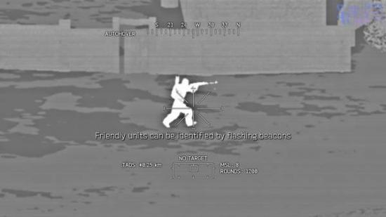到敌人基地后按下LS,然后按B可以进入热成像视觉,和MW2对战时的阿帕奇一样,LT放大,RT射击。