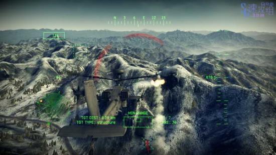 开始后从山谷中向前飞,会遇到四个碉堡,用地狱火炸掉然后去目标点的小镇。