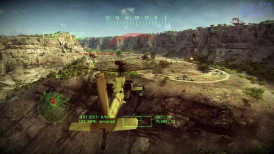 在山谷中低飞,路上遇到的碉堡都用地狱火炸掉。