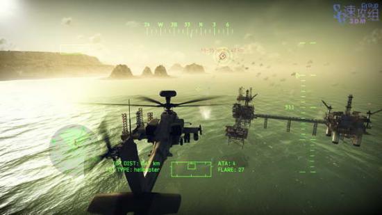 最后一关,开始后飞向油井,直接用地狱火干掉八艘敌人船只,然后对付敌人直升机,都干掉后等着队友直升机降落到油井上。