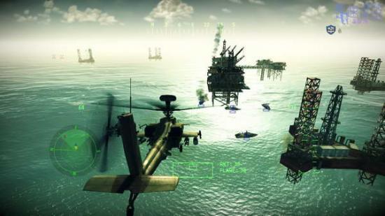 海上关卡,水面十分漂亮,一开始建议先换成地狱火干掉敌人八辆船,再用导弹干掉剩下的,清理完第一个区域后去标记点的油井。