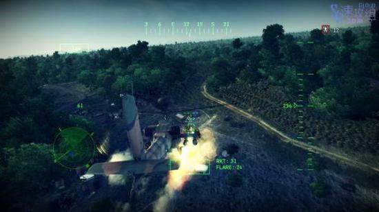 又是丛林关卡,起飞之后向前飞就可以,一路上可以看到越来越多的敌人,全都干掉,最后敌人比较密集的地方把敌人都杀光后等队友直升机降落。