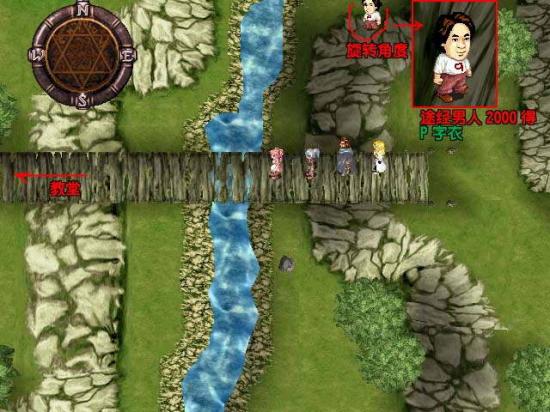 3.在拉格尼村外的山洞如果有与途径男人对话,教会后面的桥可以再次遇到途径男人,转个角度便可以对话,多对话几次他生气了会请你存档,在对话一次出现Game Over,不过是吓唬人的,之后多对话两次他就消失了。