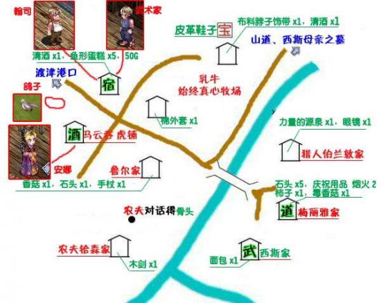 事件:和农夫铪森对话之后会掉出骨头,拾起骨头前往牧场与乳牛对话选择给他骨头