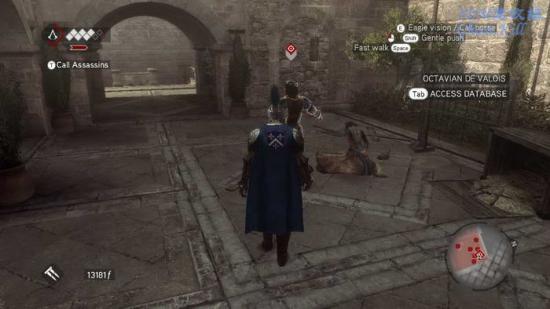 头头带着Bartolomeo的老婆躲到了建筑后,这对Ezio来说也是很好的掩护, 不要从正面过去,从右边的房顶上爬过去,背后干掉他。解放了Bartolomeo老婆后完成任务。