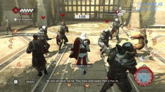回到兄弟会和同伴交谈之后去目标点找Cesare,又被他跑了,干掉这里所有敌人, 然后去找妹妹。
