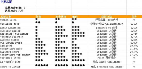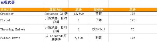 2、武器资料一览