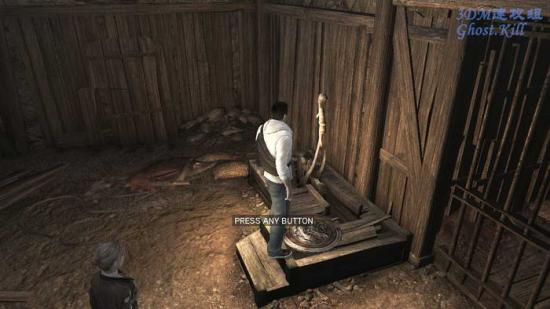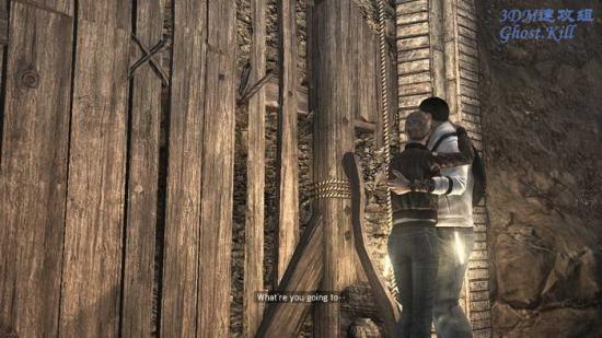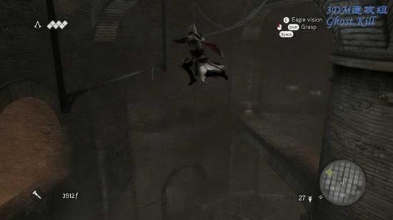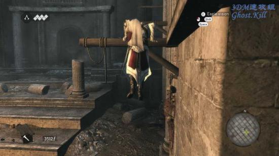 来到后院可以看到Ezio的幻影,跟着幻影走可以看到栅栏有个破口,从破口跳下去有个山洞,和女女一起进去。