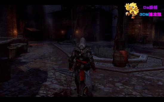 追捕凶手,不要爬屋顶,直接从路面上加速追逐!动画后,消灭几个守卫。