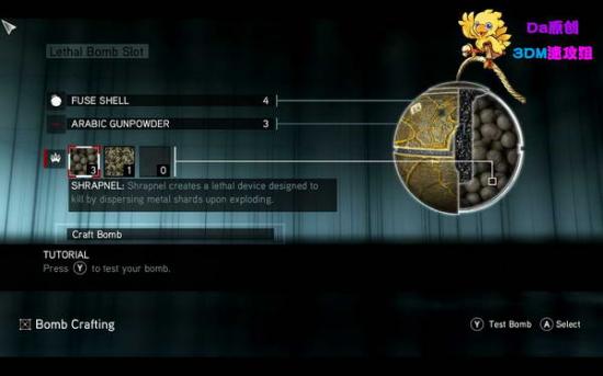 找TAZIM学习制作炮弹,选择材料时都有白色加粗边枢提示。制作完可以按E测试一下威力