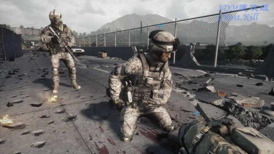 冲下山坡开始作战,敌人数量超多,每杀光一个区域的敌人后都要向前推进一段,不少地方有子弹补给。