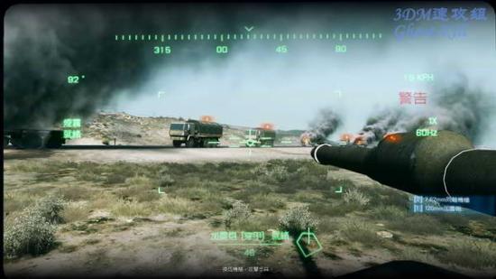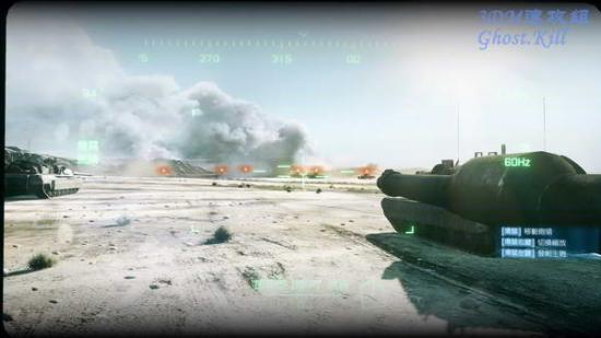 第一批坦克干掉后尘土对面又来了几辆坦克,按C切换成热成像模式,可以隔着尘土看到敌人坦克, 也可以看到敌人的炮弹,虽然基本躲不开。