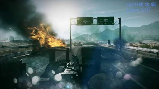 最后来到这个位置,干掉前面桥上的敌人和周围敌人的车辆之后就可以过关了。