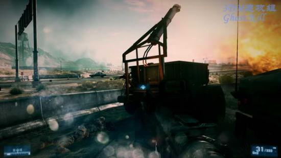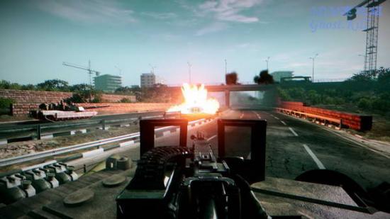 回到坦克上使用机枪,这次不需要自己开坦克了。把道路两侧的敌人全部扫死就可以了,偶尔有几辆汽车, 全部打爆,只要小心机枪的过热就没什么难度了。