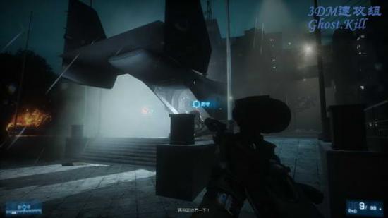 使用狙击枪把楼下停车场的灯都打掉,之后飞机会过来把友军放下。
