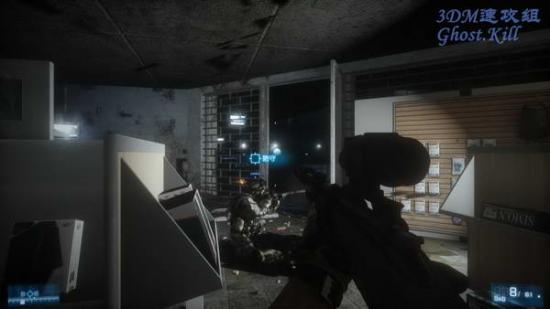 转移到这个房间,刚才位置的二楼和三楼都会有不少敌人,利用房间里放商品的架子当掩护,架子顶端有长方形的空间, 透过这个空间狙击敌人,杀光之后友军的飞机过来接应,从商场里跑到室外和友军汇合。