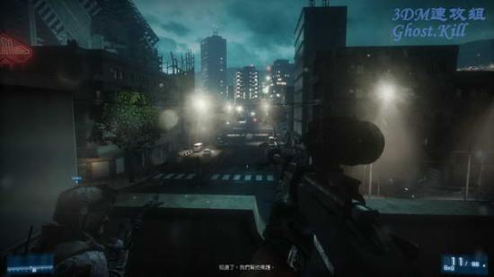 跟着队伍走,在一栋楼前要分头行动,跟着坎伯爬梯子到楼上的狙击位置,趴下之后掩护队友,这里狙击枪子弹无限, 先把友军前面在修发电机的守卫干掉,然后等他们突入前面的公寓。